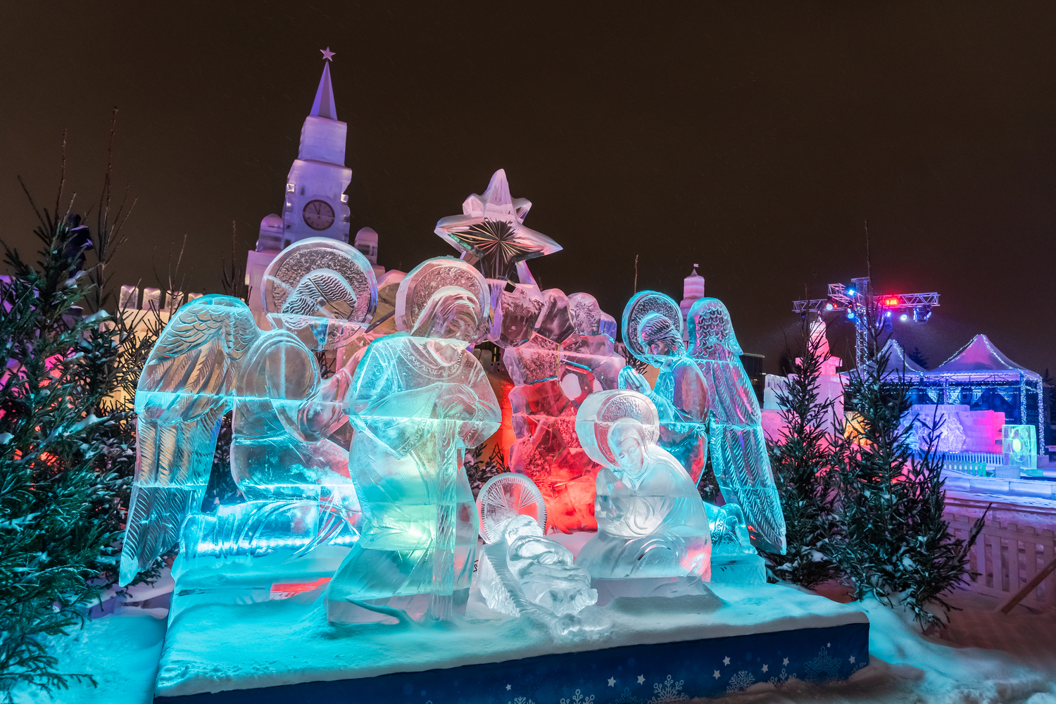 Главным рождественским подарком фестиваля станет единственный в Москве ледяной вертеп — масштабная композиция изо льда, посвящённая событию Рождества Христова. Прозрачные ледяные фигуры, мягкая подсветка и зимний антураж создают непередаваемую атмосферу созерцания и настоящего рождественского чуда. Это место, где хочется побыть вместе с близкими и почувствовать подлинный смысл праздника.
